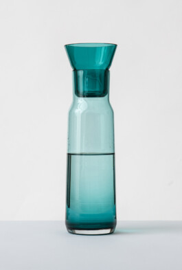 The cup on top of the carafe is not only a drinking glass, it is also the lid, which closes the carafe carefully. The size of the cup is measured to a regular drinking portion of 200 ml. This corresponds to the amount of water one's body can absorb in one go. After drinking, the carafe is sealed with the glass again, without any drops of water running down.